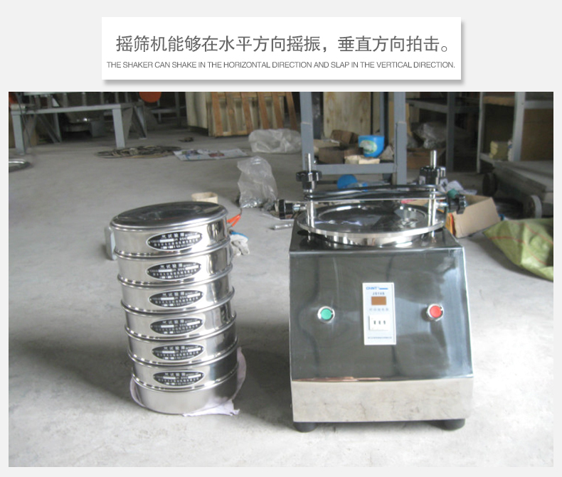 3、搖篩機,規范規定搖篩機能夠在水平方向搖振,垂直方向拍擊。搖振次數為100~200次/分鐘,拍擊次數為50~70次/分鐘;