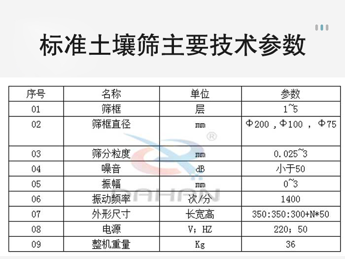 標準土壤篩主要技術參數